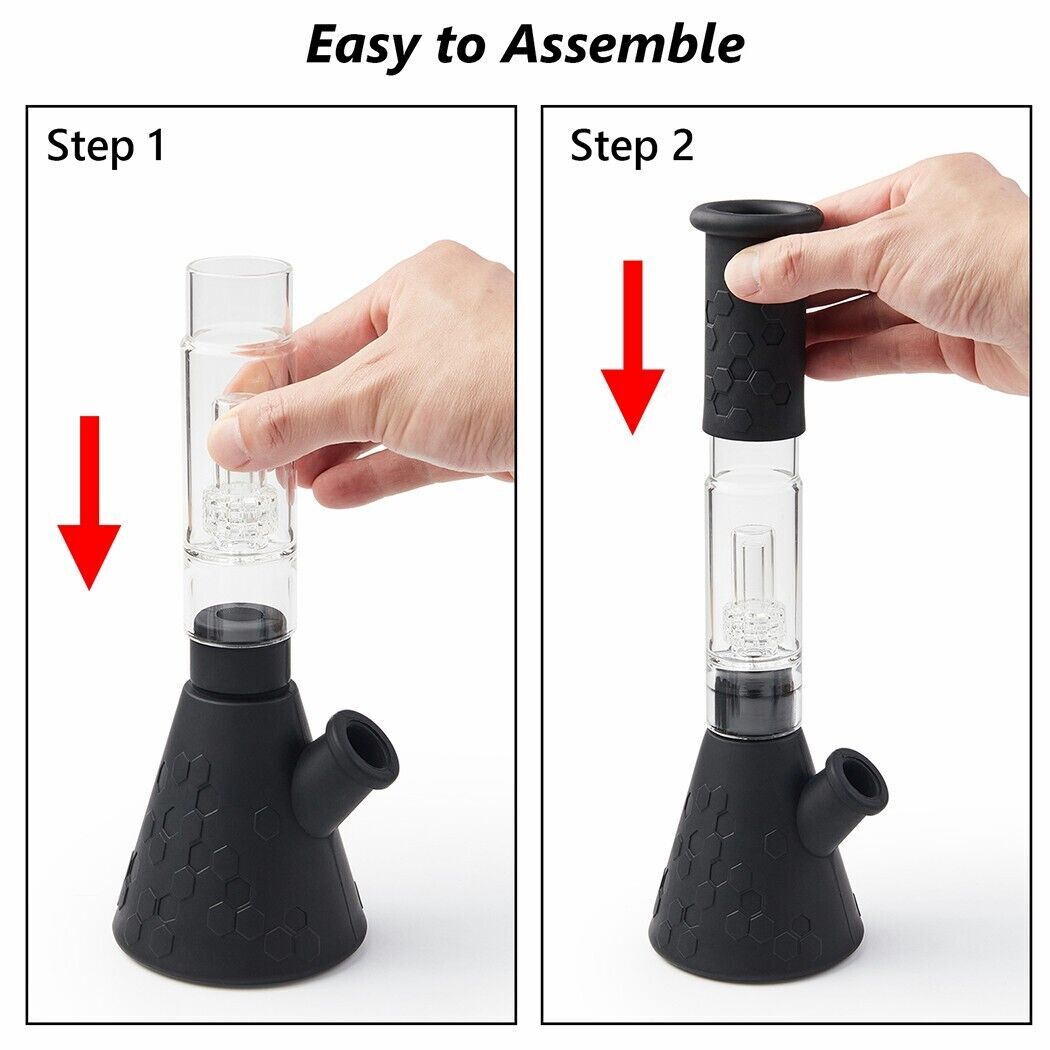 1 X Silicone and Glass Bong. This Tobacco pipe is made, and intended, for TOBACCO PRODUCTS ONLY! 1 X 14mm Glass Bowl. 1 X 14mm Glass Downstem. Made of High-Quality Silicone and Glass. 1 X Perc Middle Glass.