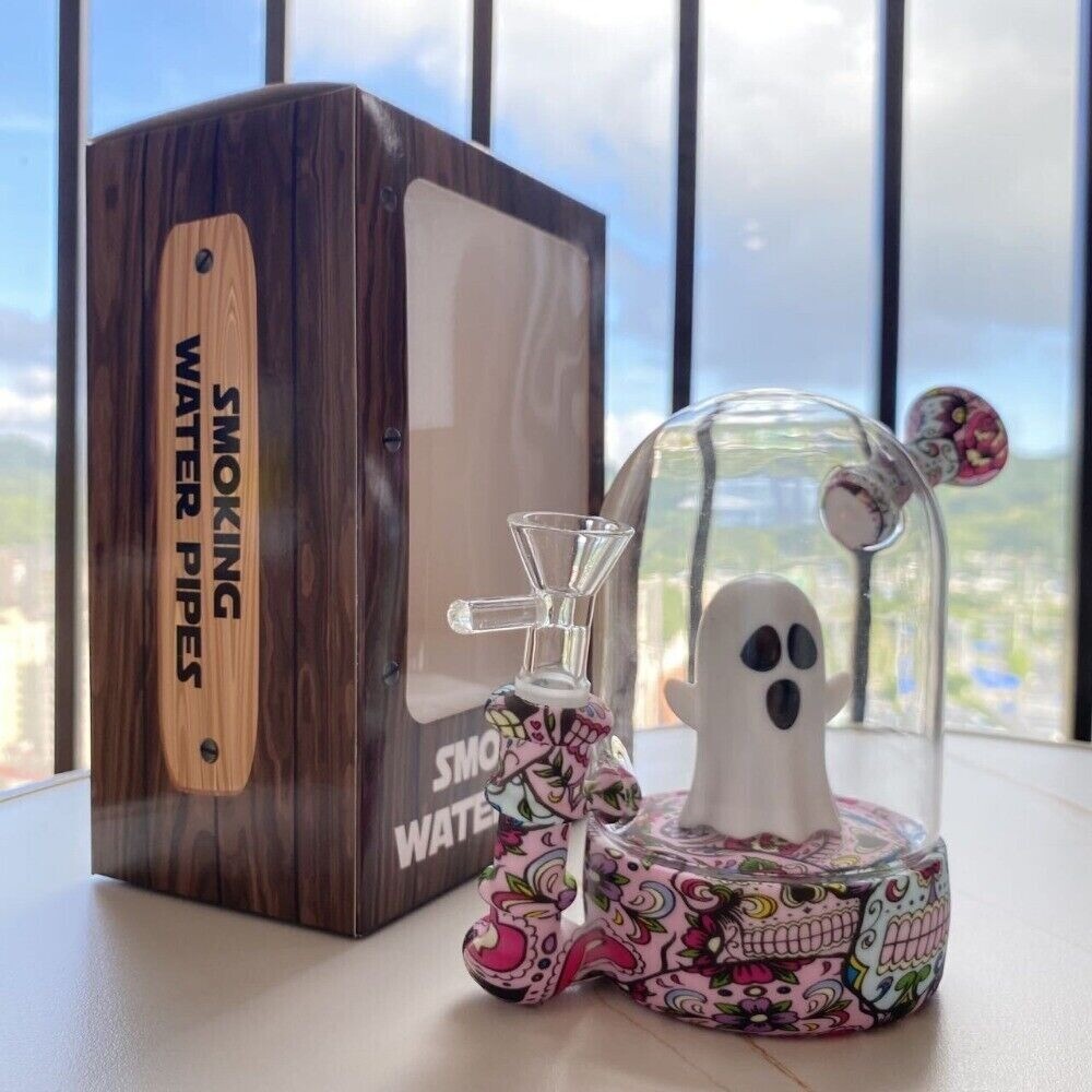 5" Silicone Water Pipe Hookah Glass Bong Ghost Bottle Smoking Pipes W/ 14mm Bowl