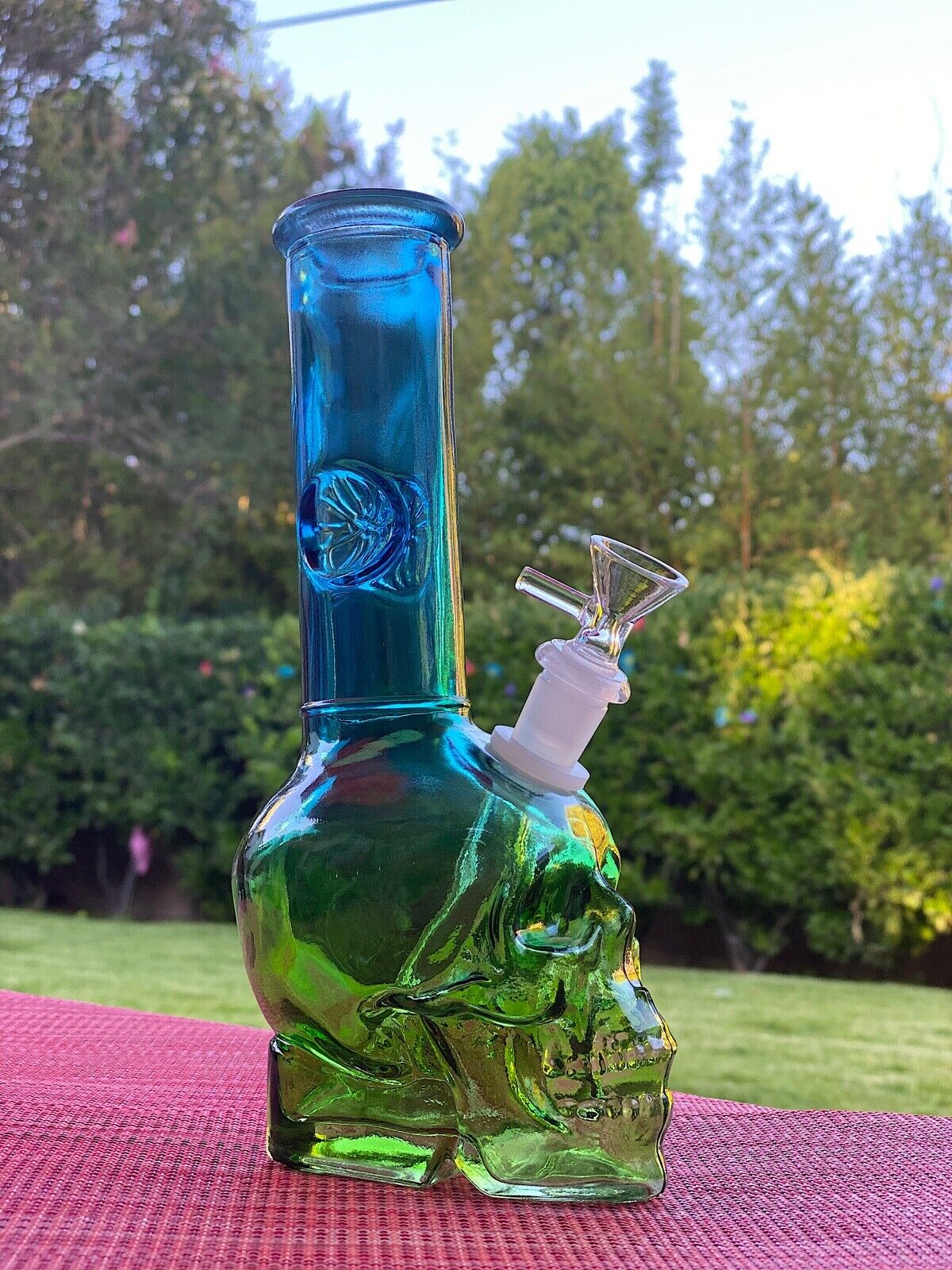 9" Halloween Skull Water Pipe Bong Hookah Thick Glass Bubbler Free Shipping