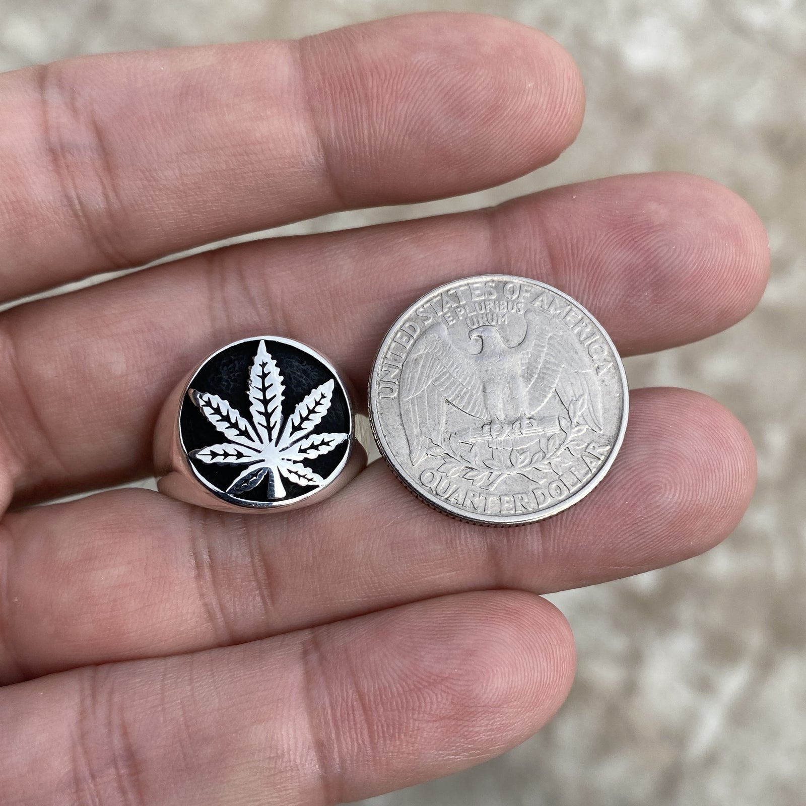 - Mens real solid 925 sterling silver weed ring.