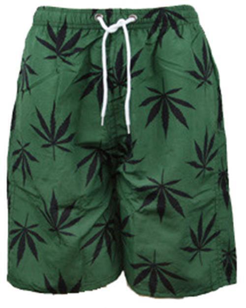 Mens Swim Trunks, Beach Swim Shorts Beach Board Shorts Pockets, Weed Leaf Print