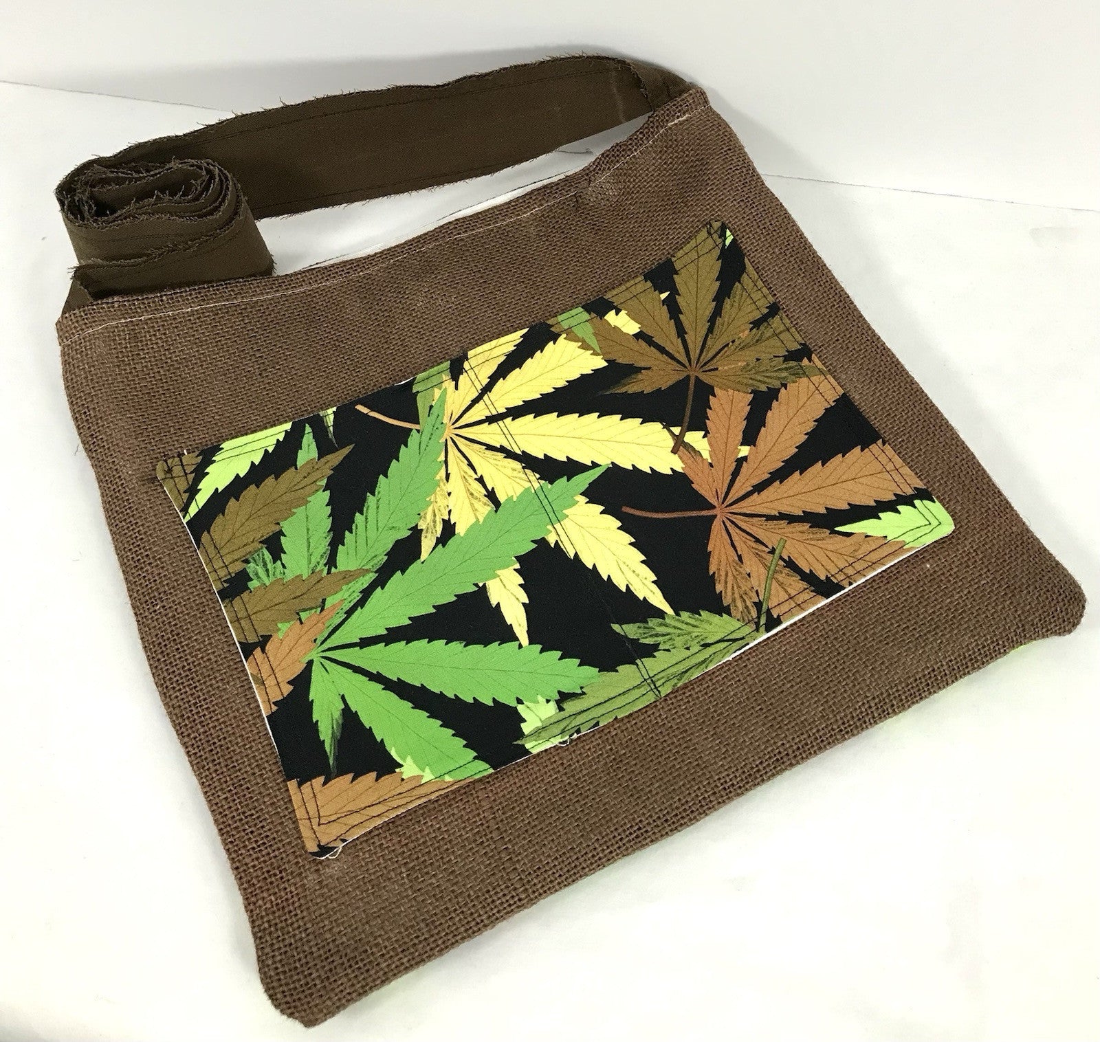 New Handmade Burlap Marijuana, Cannabis Leaf 11x12 2 Bumblebee Pockets Crossbody