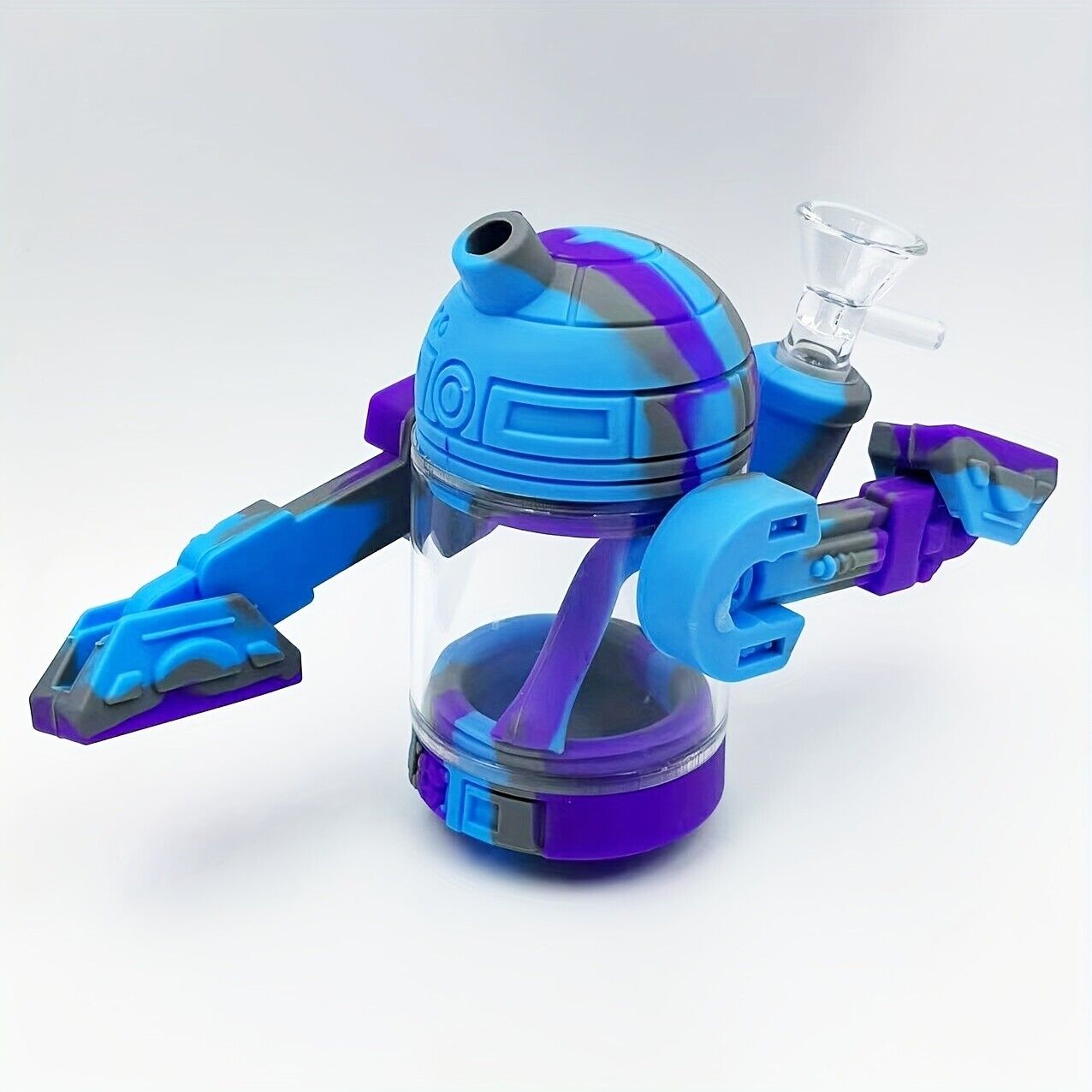Silicone Bong, 5" Rotatable Foots Robots Silicone Hookah, Heatproof Silicone Water Smoking Tobacco Bongs with Glass Male Bowl(1 PC). Rotatable foots robots 5" silicone bong, convenient and delicate, excellent performs simultaneously.