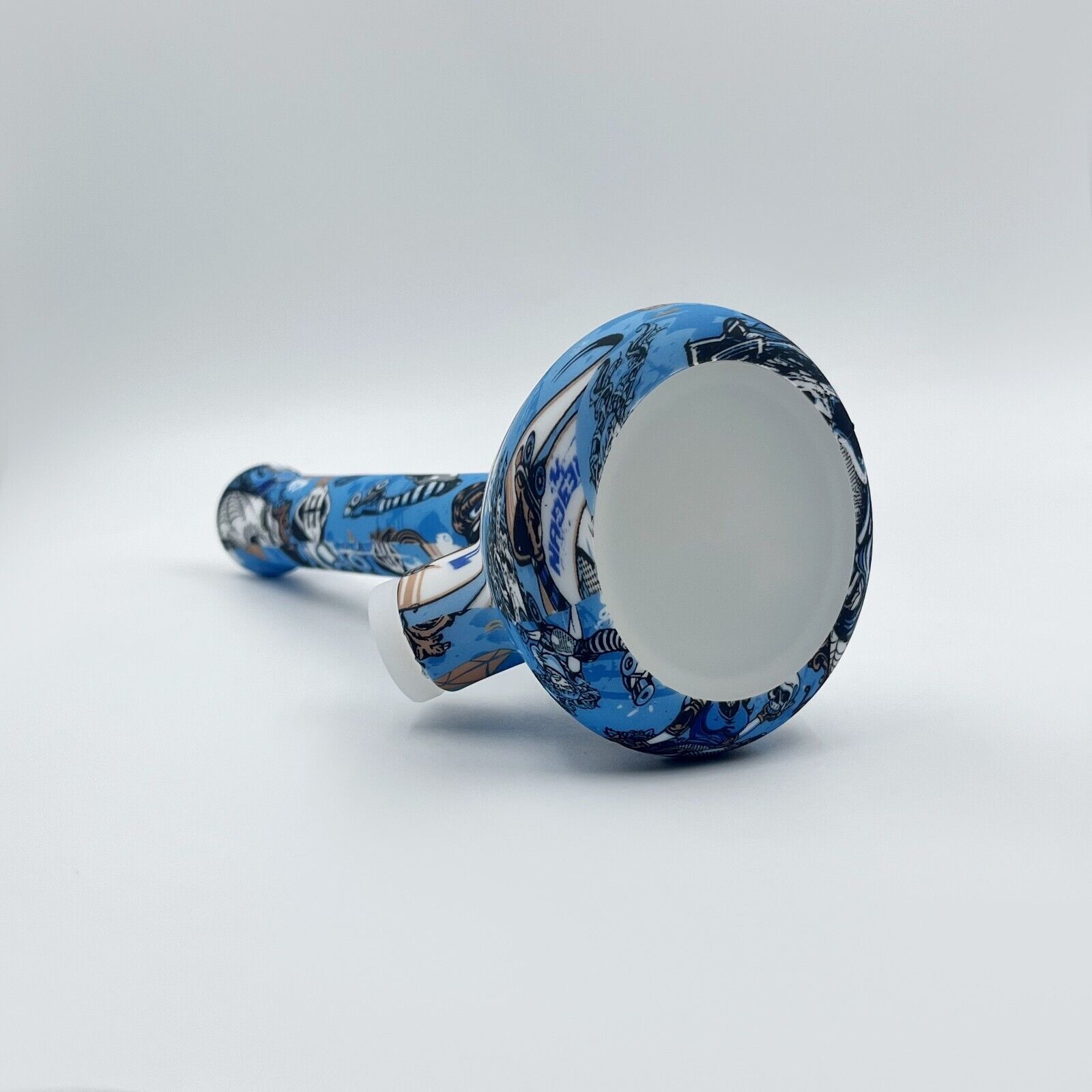 Silicone Hookah Water Pipe, 7.5" Blue Skull Theme Silicone Smoking Bong