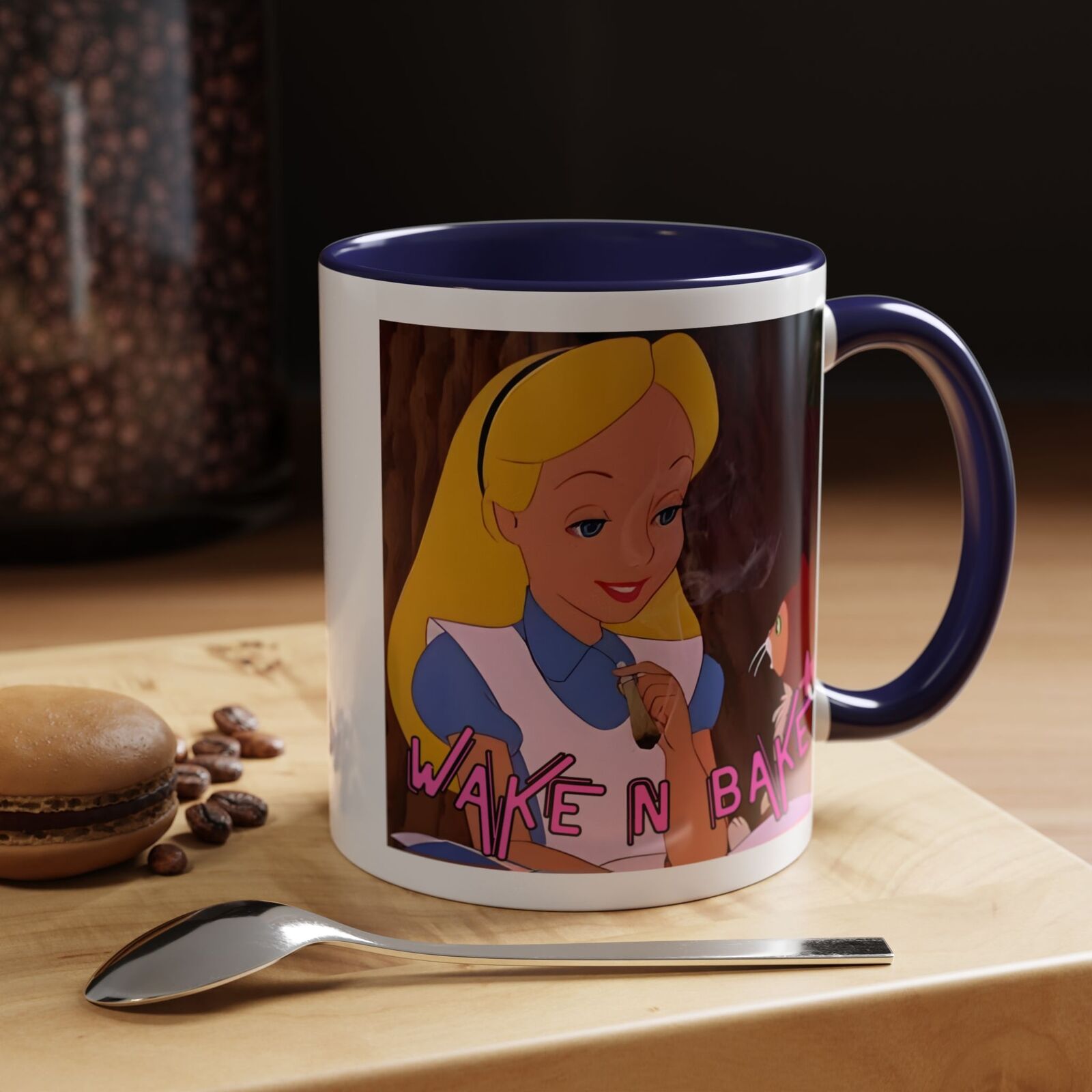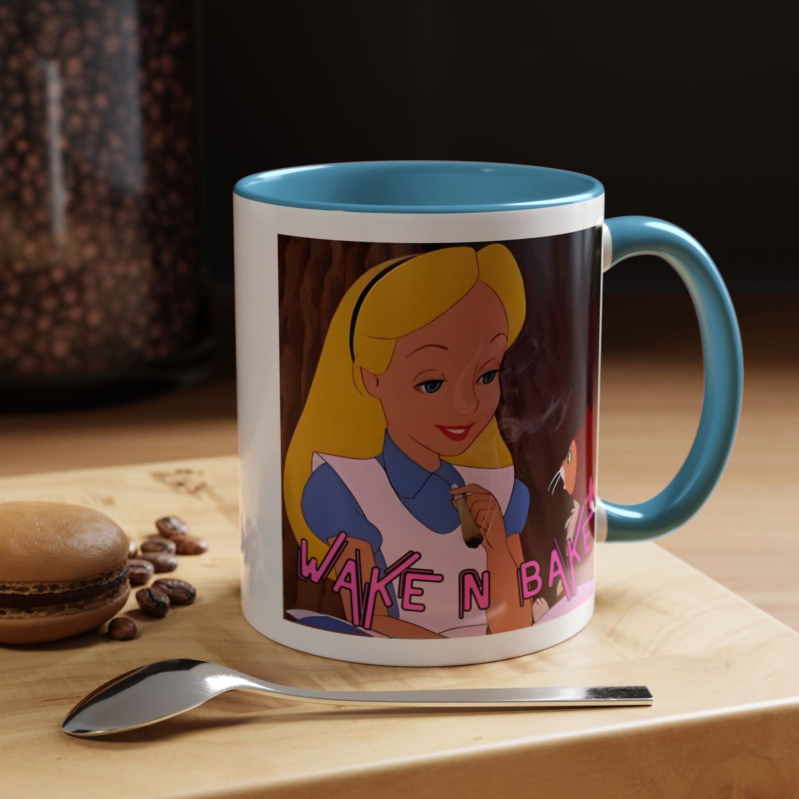 WAKE N BAKE Retro Coffee Mug (11, 15oz) Cartoon Alice Smoking Joint Vintage 420