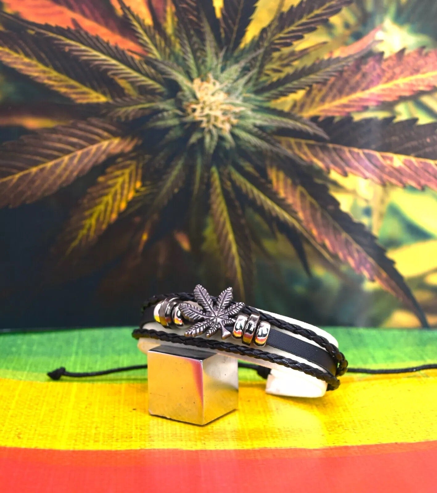 Weed 420 Marijuana THC Pot Leaf Rastafarian Jamaica Hip Hop Adjustable Bracelet